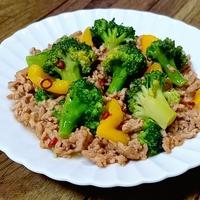 ブロッコリーと豚ひき肉のピリ辛中華炒め レシピ・作り方