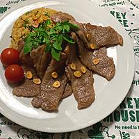 今回は、A5ランク神戸牛サーロインステーキを焼いた後の脂と旨みで、ガーリックライスを作りました。何時も以上に絶品でしたw