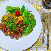 手順4で、牛サーロイン肉はお好みの焼き加減で調整してください。 塩加減は、お好みで調整してください。