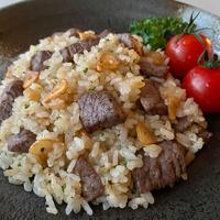 ガーリックの香ばしい香りが食欲をそそる、贅沢な一品です。サーロインやカルビ、豚バラなど好みのお肉を使って作れます。お肉から出る脂と旨みが、バターと醤油で味付けしたごはんに絡み合い、ジューシーな味わいに。クレソンやマッシュルームを加えるアレンジも人気で、シンプルながら奥深い美味しさです。10分程度で簡単に作れるのも魅力的です。
