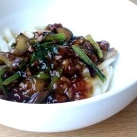 とろっとおいしい、小松菜とナスのひき肉あんかけうどんはいかがでしょうか。ニンニクと生姜が香る、中華風の味付けのあんかけうどんですよ。うどんの代わりに、ご飯にかけてもおいしいです。ぜひお試しくださいね。
