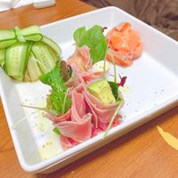 クリスマスにピッタリなプレゼント風の前菜です。プレゼントボックスを割ると中から卵がとろーりと出てサーモンと絡んでいて、とても濃厚です。サーモンと温玉の組み合わせは間違いないですので是非特別な日の夜にいかがですか?