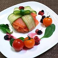 きゅうりをリボンのように十字にしました!ハチミツのベリーソースが美味しかったです♪