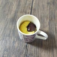 - 2 マグカップに半量ずつ入れてラップをせずに600Wの電子レンジで1分程加熱し、「チョコレート効果カカオ72%」を2枚ずつ差し込み、再度600Wの電子レンジで中に火が通るまで1分程加熱し完成です。