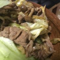 しめじ追加で!キャベツはレンジ600w2分チンしたのですぐ出来た。美味!久しぶりの牛肉〜より美味しく感じました♪