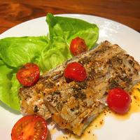 バターとレモンの爽やかな風味が太刀魚の上品な白身と見事にマッチする一品です。フワフワに焼き上がった身は、骨も気にならないほど柔らかく、塩コショウとバジルの香りが食欲をそそります。ミニトマトの酸味とジューシーさが料理のアクセントに。カリカリに揚げ焼きにすると、食感も楽しめます。おしゃれな見た目で、和魚のフレンチ風アレンジとして、ワインとの相性も抜群です。