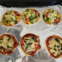餃子の皮を生地に使った手軽で楽しいミニピザです。トマトとバジルとモッツァレラチーズで作るとしっとり、ベーコンとピーマンの組み合わせはカリカリとした食感を楽しめます。トッピングはコーン、ブロッコリー、ウインナーなど、お好みの具材でアレンジ自在。ガーリックオイルをかけて風味を加えたり、チーズをたっぷり乗せてこんがり焼くのがポイント。おつまみやおやつにぴったりで、子供から大人まで大好評です。