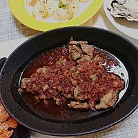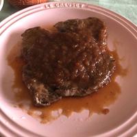 赤ワインを料理酒に変えて作り、煮詰めたあとバターを加えていただきました。