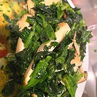 - 1 鍋にお湯を沸かして塩、ほうれん草を入れて30秒程ゆで、お湯を切ります。流水で洗い、水気をよく絞り、3cm幅に切ります。