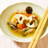 あったかい きのこと根菜のポトフのご紹介です。生姜の風味が効いた簡単にお作りいただけるボリュームたっぷりのスープです。食欲がない時や疲れた時にもほっこりできる味です。お好みのお野菜を入れて作ってみてくださいね。