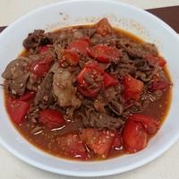 トマトの酸味と牛肉が合って美味しい!とても簡単。疲れが取れそうな味です。