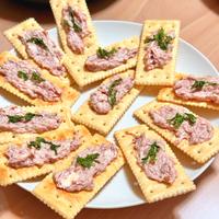 - 2 クラッカーに1をのせて器に盛り付け、イタリアンパセリをのせたら出来上がりです。