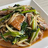 鶏レバーで作りました!最初のレバー炒める時に火をしっかり通しておくことで、後半の野菜のシャキシャキ感を残せだなぁと思いました!味付けはレシピ通りで最高でした!!