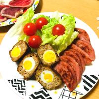 - 5 ボウルに2、残りの肉だねの材料を入れ、手で粘りが出るまでよく捏ねます。6等分にし、うずら卵の水煮を包むように丸く成形します。