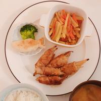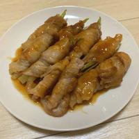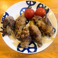 - 2 牛もも肉は塩こしょうをふり、1を3切れずつ巻き、薄力粉をまんべんなくまぶします。