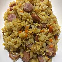 カレーの残りを炒めて作りました!チキンが入ってたのでウィンナーは焼いてトッピングしました!美味しかったです!