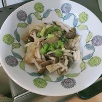 時短レシピですね。しめじ以外に舞茸もプラスして、ミニトマトを彩りにしてみました。柚子胡椒とポン酢でサッパリ食べれました。
