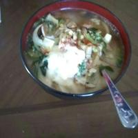 もやしと卵をオン〜