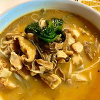 - 2 1に(A)を入れて、鶏ひき肉をほぐしながらよく混ぜます。さらにうどんを入れてふんわりとラップをし、600Wのレンジで3分程鶏ひき肉に火が通るまで加熱します。