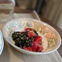 生わかめとトマトの甘酢和えはいかがでしょうか。 コリコリとした食感の生わかめと甘酸っぱいトマトがさっぱりいただけます。 とっても簡単なので、あと一品ほしいというときにとても便利です。 ぜひ、お試しください。