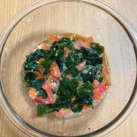 - 準備 生わかめは、加熱の必要があるものは沸騰したお湯で1分ほど、鮮やかな緑色になるまでさっと茹でておきます。 トマトのヘタは取り除いておきます。