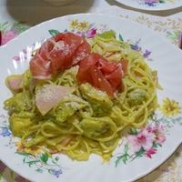 メインではなくサブの1品として作りましたが、パスタ200gで大量になってしまいました。😅その他調味料は倍量にして、アボカドは2個使ってます。バジルはお皿に盛った後に粉末のものを振りかけました。