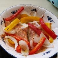 長ネギの代わりに玉ねぎを使い、オレンジパプリカを追加しました。彩りと味を楽しめました。