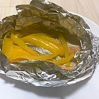- 2 次に白ネギ、鮭、黄パプリカ、トマト、(A)をアルミホイルで包みます。
