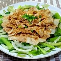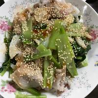 タレおいしい。白ごま→黒胡麻。パプリカを刻んで入れました。小松菜シャキシャキなので、苦手な方は先に小松菜を若干チンしてから作るとよいかも。