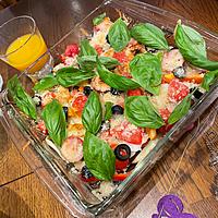 今回はアジと玉ねぎとナスとトマトとブロッコリーとオリーブを入れてバジルソースで作りました!