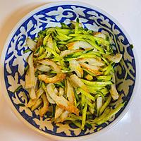 - 3 きゅうりは塩を振りかけて板ずりして細切りにし、キッチンペーパーなどで水気を切ります。