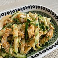 ・きゅうりを板ずりした後、塩を洗い流さずにそのまま千切りして水気を絞ることで、板ずりと塩揉みの両方の工程を一度に済ませています。きゅうりに塩気が適度に残るので、下味の効果もあります。 ・味に変化をつけたい方は、少量のごま油を加えていただくと、ひと味違った風味が楽しめますよ。