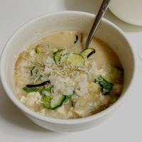- 4 ボウルに(A)を入れて混ぜ、水を入れて混ぜ合わせます。1、2、絹ごし豆腐を崩しながら加えます。ラップをして冷蔵庫で1時間冷やします。