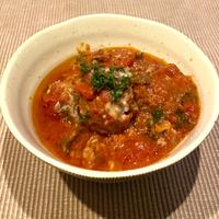 フワフワ食感のミートボールと複雑な香りが食欲をそそり家族からも好評です。パセリはタイムや小ネギ等その時あるものを応用しています。卵黄は1人1個落としてます。