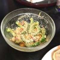 ゴーヤは軽く湯がきました。ミョウガが入って大人の味かな。