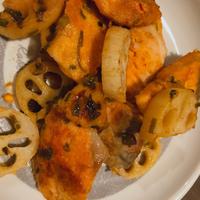 レンコンのシャキシャキ感がたまりません。つまみ食いが止まらないです。