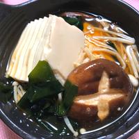 豆腐、えのき、しめじ、生ワカメを使いました。