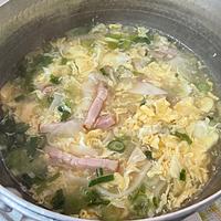 - 4 鍋に水を入れて中火で加熱し、沸騰したら鶏ガラスープの素、1、2を入れて煮ます。