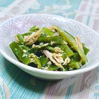- 1 鍋にお湯を沸騰させ、茎わかめを入れて1分ほどゆで流水で洗い、水気を切り細切りにします。