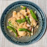 鶏もも肉の梅おろし南蛮のご紹介です。ミョウガのシャキシャキした食感と、ししとうのほろ苦さが甘酸っぱいタレによく合います。梅干しが入ることでさっぱりといただけますよ。ぜひお試しくださいね。