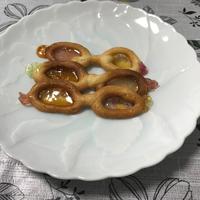 - 6 クッキングシートを敷いた天板にのせ、170℃のオーブンで5分焼きます。一度取り出して20枚に1を入れ、さらに5分焼き、飴が溶けたらオーブンから取り出してそのまま粗熱を取ります。