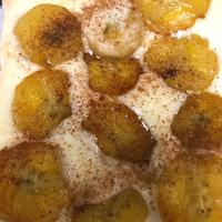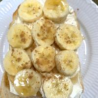 マスカルポーネをたっぷり塗って、バナナの輪切り、シナモン、メープルシロップをかけて食べました!