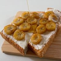 マスカルポーネチーズを食パンに塗り、ラム酒の香りの効いたバナナをトーストにしました。 ラム酒の香りと、焼いたバナナが甘く優しいお味になっています。 また、トースターで焼き上げますので、食パンもさくっとこんがり仕上がります。