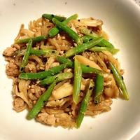 - 5 まいたけがしんなりしてきたら、(A)を入れ中火で炒め、全体に味がなじんだら火から下ろします。