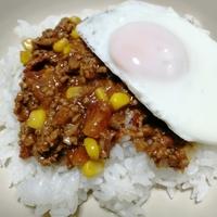 玉ねぎのみじん切りが済んだらアッという間に完成です!甘辛くてカレーパンのような味は私の好みでした。小学生の子供にはピリッとしていたようです。目玉焼きで辛さは和らいだかな?
