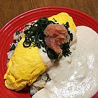 明太クリームソースのオムライスのご紹介です。大葉の風味が効いた明太子入りの混ぜごはんに、半熟卵とクリーミーな明太ソースを合わせたボリュームのある一品です。手間のかかりそうなホワイトソースも、火にかけて混ぜるだけなので、簡単ですよ。ぜひお試しくださいね。