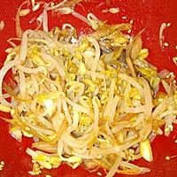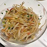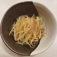 - 1 耐熱ボウルにもやしを入れ、ラップをして600Wの電子レンジで2分30秒程加熱します。ザルに上げ水気を切って粗熱を取ります。