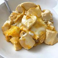 木綿豆腐とふんわり卵のめんつゆ煮のご紹介です。木綿豆腐のなめらかな喉ごしに、ふんわりとした卵がよく合います。めんつゆお手軽に作れますので、初心者の方にもおすすめの一品です。