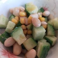 大豆ときゅうりのポン酢マリネはいかがでしょうか。大豆の水煮を使った、さっぱりとしたマリネです。味付けはシンプルにポン酢とオリーブオイルなので味が決まりやすいですよ。お好みの野菜を入れてアレンジを楽しんでくださいね。