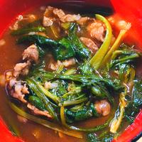 春菊と豚バラ肉のトマトスープ レシピ・作り方
